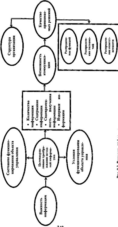 Количество, содержание и своевременность получения информации определяют качество принимаемых решений и в конечном счете эффективность деятельности организации. Таким образом, структура организации, распределение функций, полномочий и ответственности во многом детерминированы возможностями коммуникаций, методами сбора, обработки, хранения, передачи и представления информации (рис. 4).
