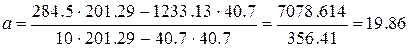 5) Проверим значимость коэффициентов a и b по t-критерию Стьюдента.