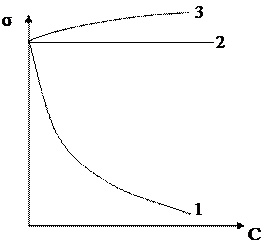 Рис. 1. Зависимость поверхностного натяжения от концентрации веществ: