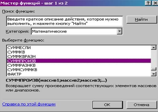 - М1. На экране появляется диалоговое окно «СУММПРОИЗВ» (рис.1.4.);