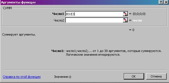 - Курсор в окно Функция на «СУММ»;