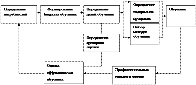 В современных организациях профессиональное обучение представляет собой комплексный непрерывный процесс, включающий в себя несколько этапов. Управление процессом профессионального обучения начинается с определения потребностей, которые формируются на основе потребностей развития персонала организации, а также необходимости выполнения сотрудниками организации своих текущих производственных обязанностей[40].