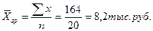средней выработки работников у 20 опрошенных составляет 2,16 тыс. руб.