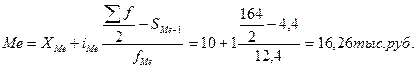 Медиана вычисляется по формуле: