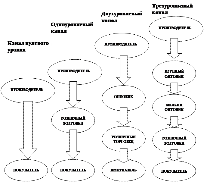 Количество посредников в цепочке движения товара от производителя к потребителю определяет количество уровней в канале распределения. Прямой канал распределения является каналом нулевого уровня.