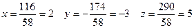 За базисные неизвестные примем x и y, за свободную z. Выразим через свободные неизвестные базисные:
