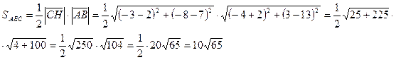 д) Найдем координаты точки Н, точки пересечения прямой АВ и СН: