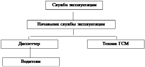 Эксплуатационная служба является основным производственным подразделением на ООО «Флагман-Амур» осуществляет контроль за работой подвижного состава, учет расхода ГСМ, учет показателей работы автомобилей. Существующая структура службы эксплуатации изображена на рисунке.