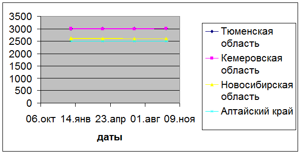 Для прогноза развития рынка медицинских услуг интересен процесс изменения численности населения. Данные по выделенным четырем регионам можно проследить в динамике. Они представлены на рисунке 2.