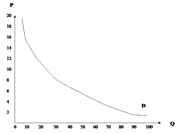 Величина спроса называется эластичной, если Ed > 1; единичной эластичности, если Ed = 1; неэластичный, если Ed < 1. Таким образом, расставим в таблице виды величины спроса (см. графа 1.): еэ – единичная эластичность; нэ – неэластичный; э – эластичный.