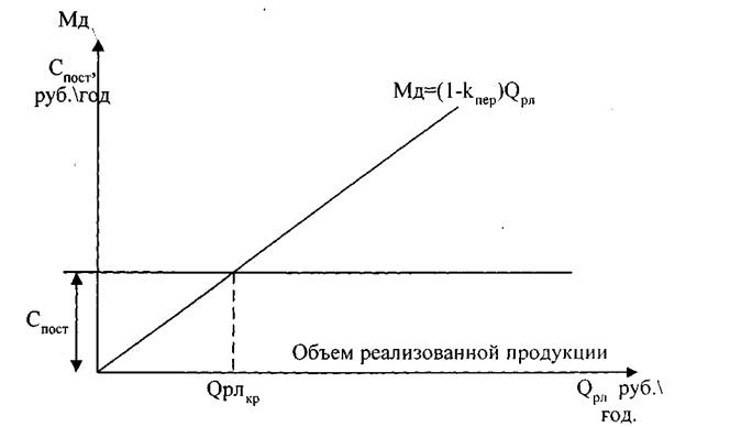 Можно проследить комплексное влияние цены, переменных и постоянных затрат на изменение точки безубыточности при разнонаправленности изменении перечисленных факторов. Одновременно из графика можно установить пороговое значение переменных, при превышении которых точка безубыточности лишается смысла, поскольку стремится к бесконечности.