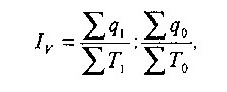 где q0 ,q1 — выпуск продукции в натуральном выражении в отчетном и базисном периодах отдельными участками предприятия, производящими однородную продукцию; Т1, Т0 - затраты труда в отчетном и. базисном периодах.