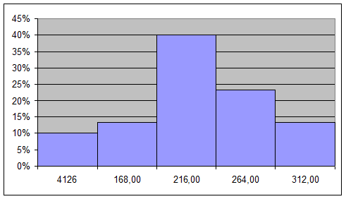 Анализируя таблицы 3- 5, необходимо отметить, что коэффициент множественной корреляции R=0,53 говорит о том, что связь между показателем и факторами можно считать средней. Коэффициент детерминации утверждает, что вариация результата на 28,71% зависит от вариации факторов.