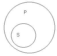 Если понятие S содержится в объёме понятия Р, то символически мы можем это представить при помощи круга S, который находится внутри круга Р. Поэтому те обще-утвердительные суждения, в которых объём подлежащего меньше объёма сказуемого, можно символически изобразить, как это представлено на рисунке.