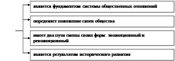 Система отношений собственности, соотношение различных ее форм объективно обусловлены степенью развития производительных сил, общественного разделения труда. Соответственно, преобразования отношений собственности – всегда лишь следствие внутренних процессов способа производства, результат приведения в соответствие уровня развития материальных производительных сил и характера производственных отношений. Субъективное изменение системы собственности, искусственное конструирование отношений присвоения марксизмом отвергаются.