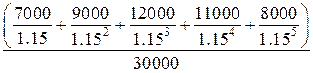 Предприятие рассматривает инвестиционный проект, первоначальные инвестиции по которому I0=20000 (у.д.е.). Ожидается, что реализация проекта в течение 5 лет обеспечит получение чистого дохода по годам постумерандо в объемах (у.д.е.): CF1=7000, CF2=9000, CF3=12000, CF4=11000, CF5=8000. Принятая ежегодная норма (ставка) дисконта d=15 процентов постоянна в течение всех лет экономической жизни проекта. Требуется: 1) оценить экономическую эффективность проекта, вычислив NPV, PI; 2) сравнить данный проект с альтернативным, у которого Iа=30000, NPVа=7250, а срок экономической жизни тоже 5 лет.