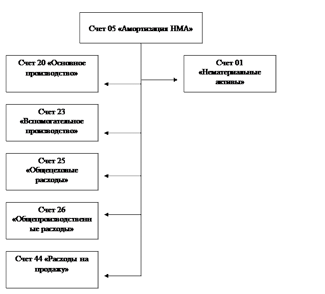 При первом способе при начислении амортизации по нематериальным активам дебетуют счета издержек производства или обращения (23 "Вспомогательные производства", 25 "Общепроизводственные расходы" и др.) и кредитуют счет 05 "Амортизация нематериальных активов".