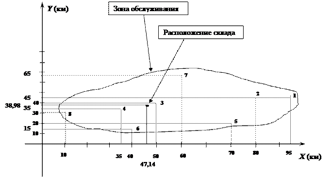 Задание 4. Найти место для расположения распределительного склада методом определения центра тяжести грузовых потоков
