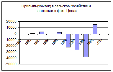 Прибыль (убыток) в сельском хозяйстве и заготовках в факт. ценах |
