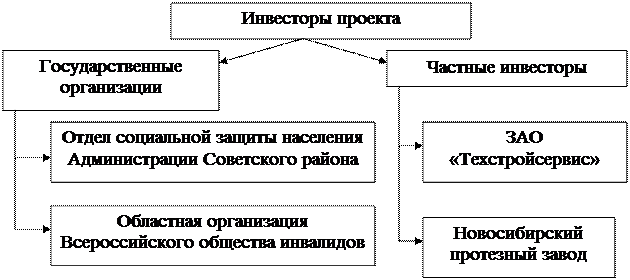 Так как проект является частью государственной программы реабилитации инвалидов в стране, то вполне очевидно, что основным инвестором проекта будут выступать именно государственные органы и службы. Самым главным инвестором для реализации проекта станет Областная организация Всероссийского общества инвалидов, которая является государственной.