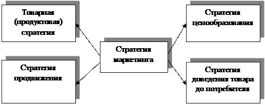 Таким образом, маркетинговые стратегии — главные направления маркетинговой деятельности, следуя которым организации стремятся достигнуть своих маркетинговых целей. Рассмотрим основные элементы стратегии маркетинга (рис.1).