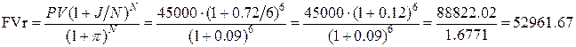12. Вклад 45000 положен в банк на полгода с ежемесячным начислением сложным начислением процентов по номинальной ставке 72% годовых. Определить реальный доход вкладчика если ожидаемый ежемесячный уровень инфляции составит 0.09.