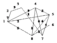 7. Требуется а. Нарисовать граф б. Найти степенную последовательность графа в. Найти матрицу смежности графа г. Обозначить рёбра и найти матрицу инцидентности д. Определить количество компонент связанности е. Найти 4 простых цикла ж. Найти минимальный остов и его вес Решение.