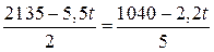 Для того, чтобы провести на плоскости прямую линию, достаточно знать любые две различные точки, лежащие на этой прямой. Прямая (1) проходит через точки с координатами (0;81,8), (409; 0) . Прямая (2) проходит через точки с координатами (0;105,75) и (141;0).