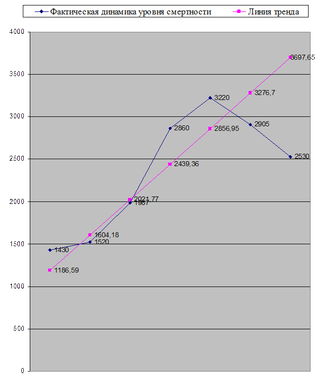 График. Теоретическая линия тренда и фактическая динамика уровня смертности