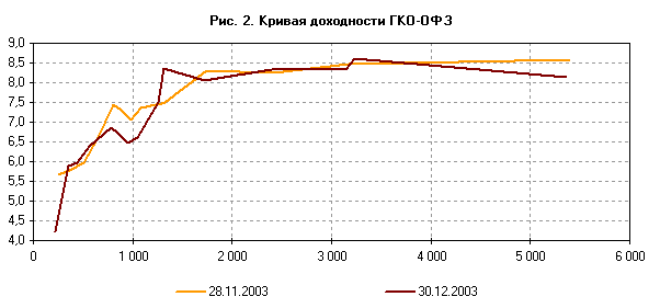 В 2003 г., благодаря совместным действиям Минфина России и Банка России, повысилась значимость рынка государственного внутреннего долга как индикатора доходности безрисковых вложений. Снижение ставок по государственным ценным бумагам являлось одним из факторов уменьшения стоимости привлечения средств на корпоративном рынке, что способствовало расширению круга эмитентов, прежде всего за счет предприятий реального сектора.