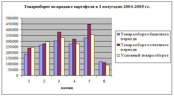 Рис.9 Диаграмма изменения товарооборота в 1 полугодии 2004-2005 гг. по продаже картофеля