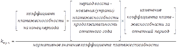 Коэффициент восстановления (утраты) платежеспособности характеризует наличие реальной возможности у предприятия восстановить либо утратить свою платежеспособность в течение определенного периода[14].