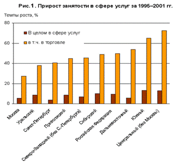 Рис. 1. Прирост занятости в сфере услуг за 1995-2001 гг.