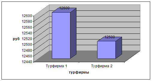 Как видно из рисунка 11, по турфирме себестоимость (покупная стоимость) путевки ниже на 300 рублей.