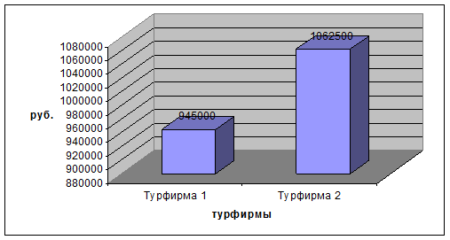 Как видно из рисунка 10, по турфирме 2 выручка от реализации выше на 117500 рублей.