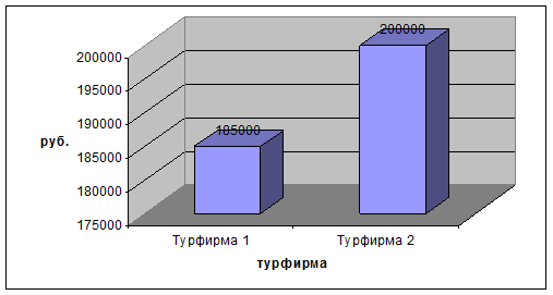 Рис. 10. Сравнение объемов реализации ( выручки ) по турфирмам