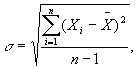 Среднее квадратическое отклонение s рассчитывается по следующей формуле: