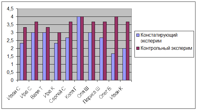 Сравнительная диаграмма результатов исследования детей экспериментальной группы в контрольном и констатирующем эксперименте