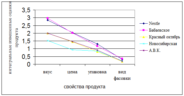 Анализируя интегральную взвешенную оценку конкурентоспособности производимого компанией «Инмарко» мороженого можно сказать, что продукция уступает по некоторым параметрам лишь продукции компании “Nestle”.