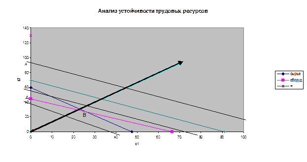 2. Используя графический метод решения задачи линейного программирования, найти оптимальную программу выпуска продукции.