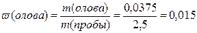 4. Определим муссовую долю олова в 2,5 г пробы: