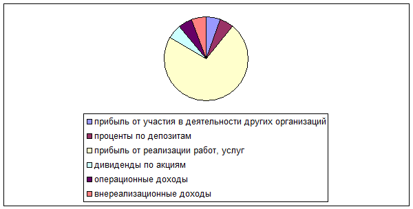 2) расчет структуры балансовой прибыли по источникам поступления в процентах (см. рис.1 );