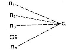 В схеме показано, что причинно-следственная связь направлена от причины к порожденному ею следствию. Значит, причина и следствие — асимметричны, и отношение между ними необратимо. Имеется в виду, что причины вызывают не любые, а определенные, соответствующие им следствия. Скажем, из косточки винограда вырастает виноградная лоза, из семени чертополоха — чертополох. Эта схема — назовем ее простой схемой причинности — служит основой более сложных схем причинных отношений, охватывающих множество практически одновременно действующих причин. Графическая модель такого соотношения выглядит следующим образом: