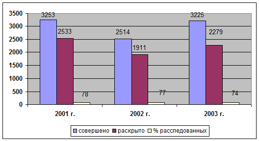 2.1. Общая характеристика динамики преступности в Октябрьском районе г. Новосибирска и в г. Новосибирске в целом за 2001-2003 гг. 31
