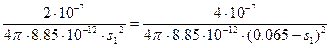 Так как заряды одноименные, то искомая точка будет находится на отрезке, соединяющем данные заряды. Обозначим расстояние от искомой точки до первого заряда s1.