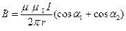 Найдем значение магнитной индукции от одного проводника.