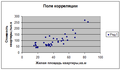 2. Построить поле корреляции результативного признака и наиболее тесно связанного с ним фактора.