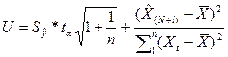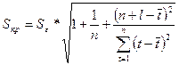 Доверительные интервалы для прогнозных значений рассчитываем по формуле: