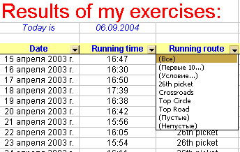 Фильтровать списки в Excel можно двумя способами: автофильтром и расширенным фильтром (меню ДанныеàФильтр). На рисунке сверху показан пример работы автофильтра: можно выбрать один из вариантов, можно задать условие. Тогда будут отображаться строки, соответствующие условию. Увидеть снова весь список можно, выбрав ДанныеàФильтрàОтобразить все. Расширенный фильтр заключается в создании дополнительных ячеек с условиями и затем фильтрации по этим условиям. Вот пример использования (сверху — исходные данные, затем выборка, внизу — таблица условий).