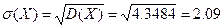 D(X) = 20.67-4.04^2=20.67-16.3216=4.3484